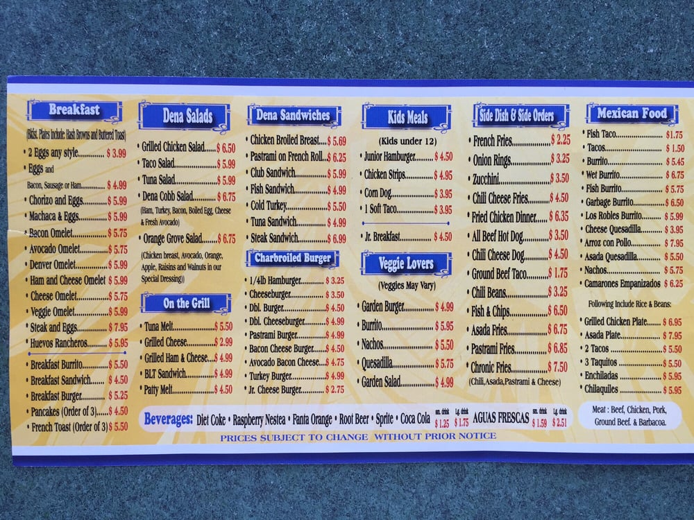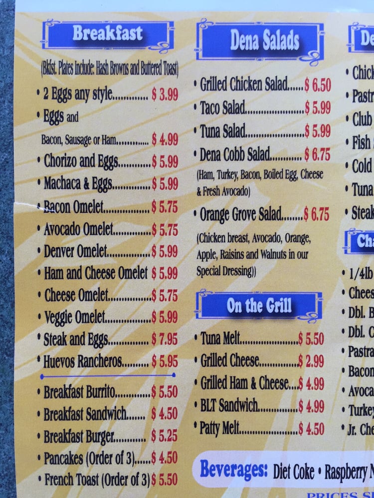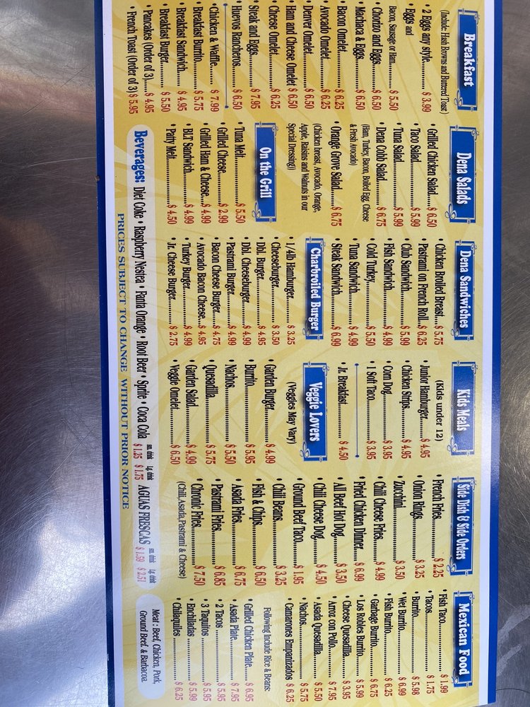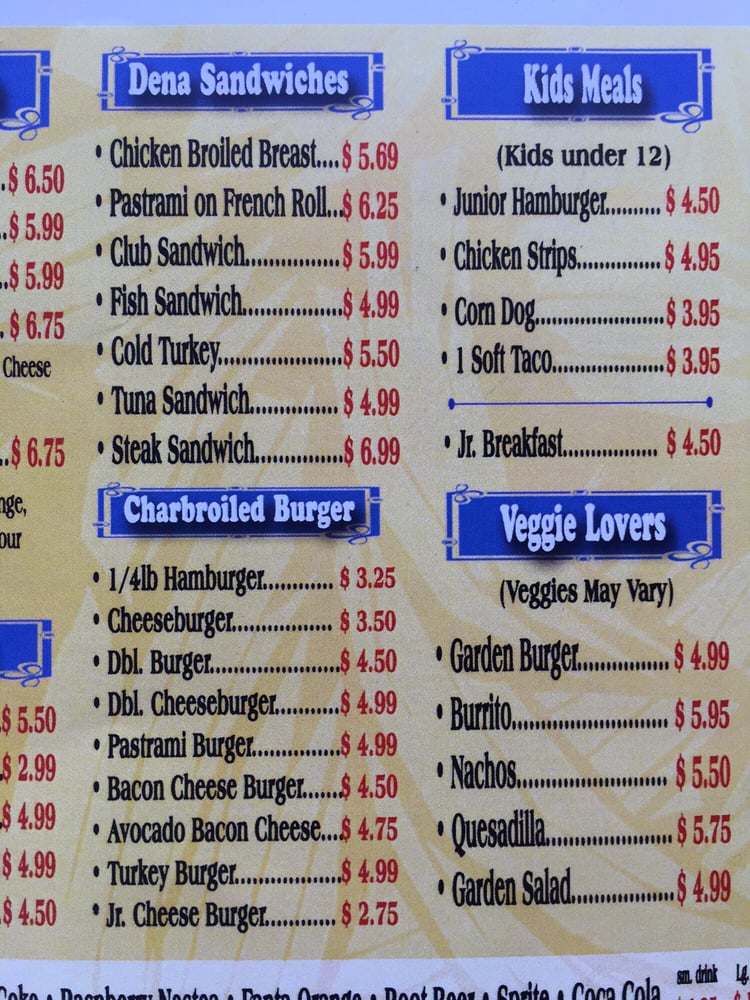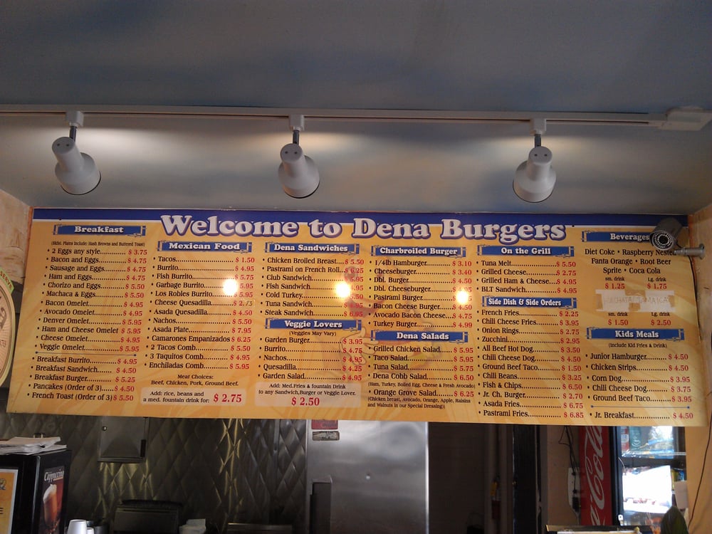 Introducing the menu at Dena Burgers, a Latinx-owned restaurant in Pasadena, CA, offering a variety of mouth-watering options. From breakfast favorites like omelettes, pancakes, and breakfast sandwiches to savory lunch and dinner options like burgers, burritos, and chicken and waffles. Customers rave about the quality of ingredients and the delicious taste of the dishes. With options for vegetarians and ASL proficiency, Dena Burgers caters to a diverse range of diners. The family meal deals are a great option for sharing with loved ones, and the outdoor seating and happy hour specials make it a perfect spot for a casual meal with friends or family. Whether you're in the mood for a hearty breakfast or a satisfying lunch, Dena Burgers has something for everyone. Don't miss out on this hidden gem for a delicious dining experience.